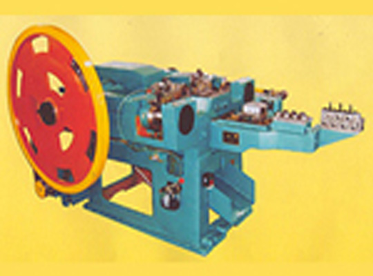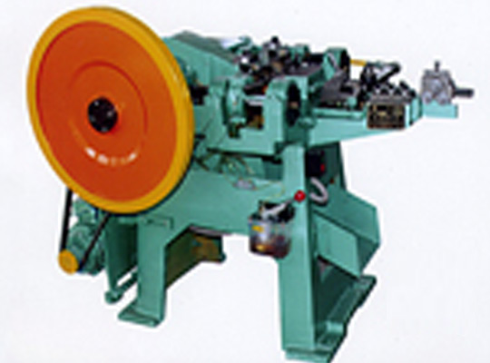 把絲拉好以后,通過全自動送線機頭,然后把拉好的絲送線機頭里面,生產出調好的半成品的釘子。